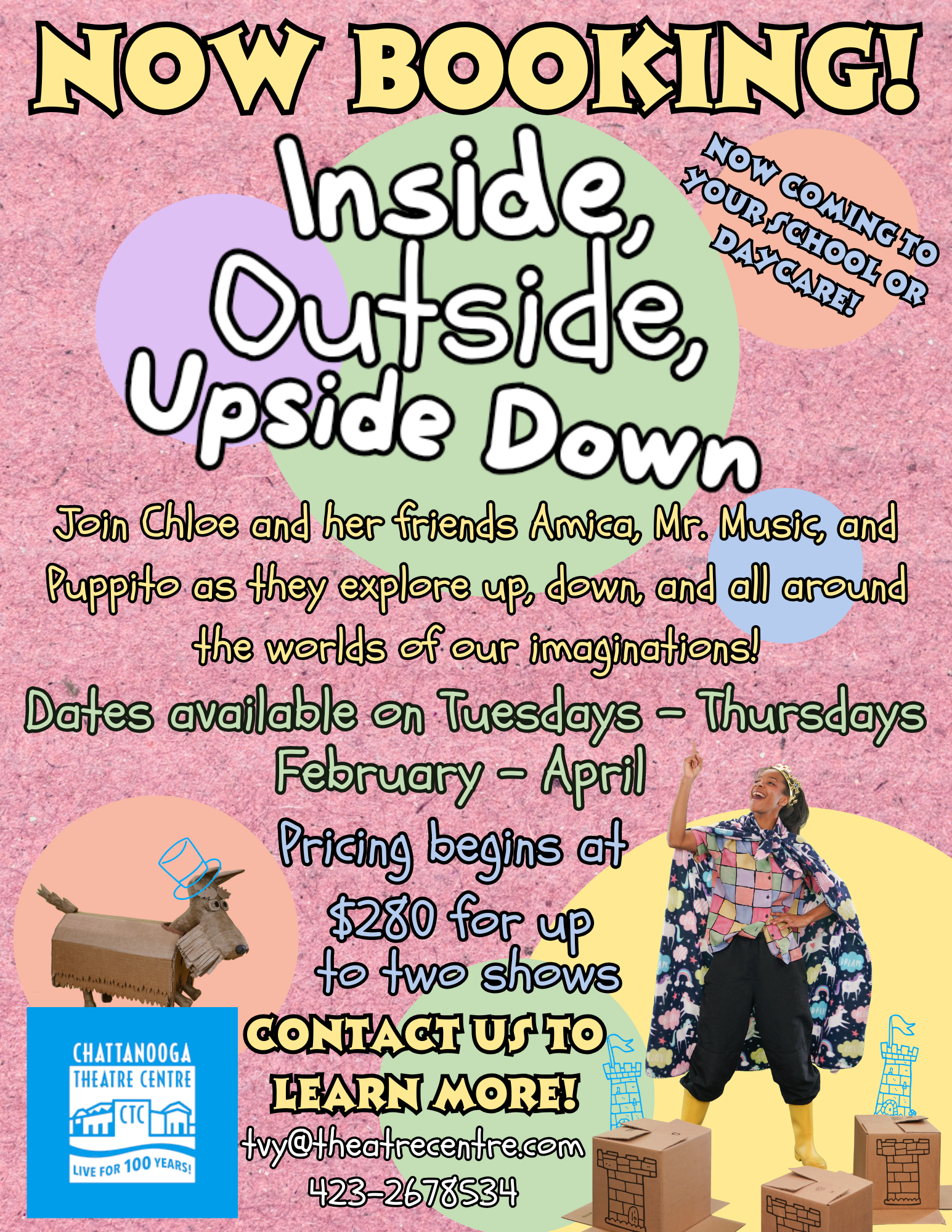 Book a TVY performance for your school, or childcare center, etc. by filling out the form below or emailing tvy@theatrecentre.com.